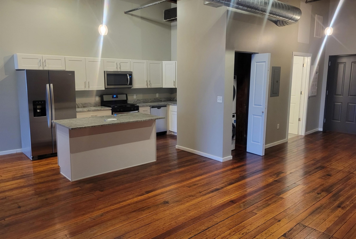 Spacious 2 bedroom 1 bathroom loft apartment in downtown Burlington steps from the Mississippi and Jefferson Street. Beautifully well-lit unit with high ceilings, large windows, new stainless steel appliances, hardwood floors, and in-unit washer/dryer. Single vanity bathroom with luxury vinyl plank flooring and quartz countertops. Access to amenities such as a fitness center and one free off-street parking spot. Come live in a private loft steps away from boutique coffee shops, breweries, restaurants, and so much more!